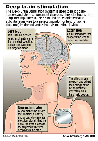 Deep Brain Stimulation (DBS) is a treatment that uses Activa® Therapy, a brain stimulation technology developed by the Medtronic Neurological Therapy Development Group to deliver carefully controlled electrical impulses to precisely targeted areas of the brain involved in movement control.