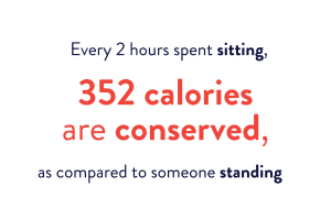 A study at the Mayo Clinic found that for every 2 hours spent sitting, 352 calories are saved compared to someone standing. Dr. Liem emphasizes that “standing can help get some of that metabolic activity back up because standing causes contractions in your postural muscles in your back, hips, and knees to keep you upright.”