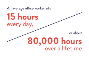 Most Americans stare at a computer screen throughout the day, whether at an office desk or at home. If not, we look at the computer in our pockets – our smartphones. The average office worker sits for 15 hours each day, which equates to around 80,000 hours spent sitting over a lifetime.