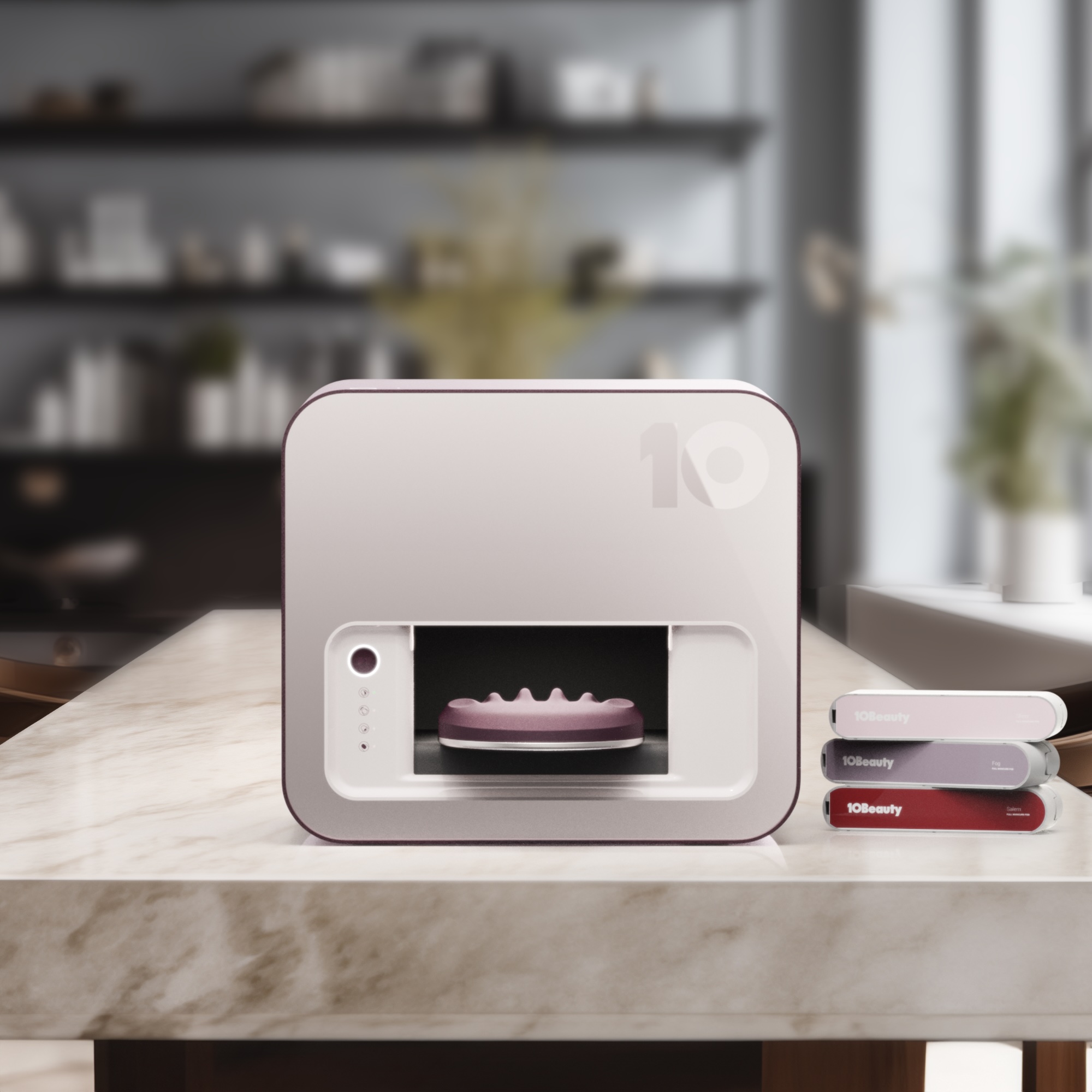 The vision for the machine was simple. “We wanted to build the first machine that could effortlessly deliver a full manicure,” says Alexander Shashou, co-founder and co-CEO of 10Beauty. He explains that the device uses a five-step system to create a full salon experience, including removing old polish, filing nails, grooming cuticles with a softening solution and buffing brush and polishing with color and top coat.